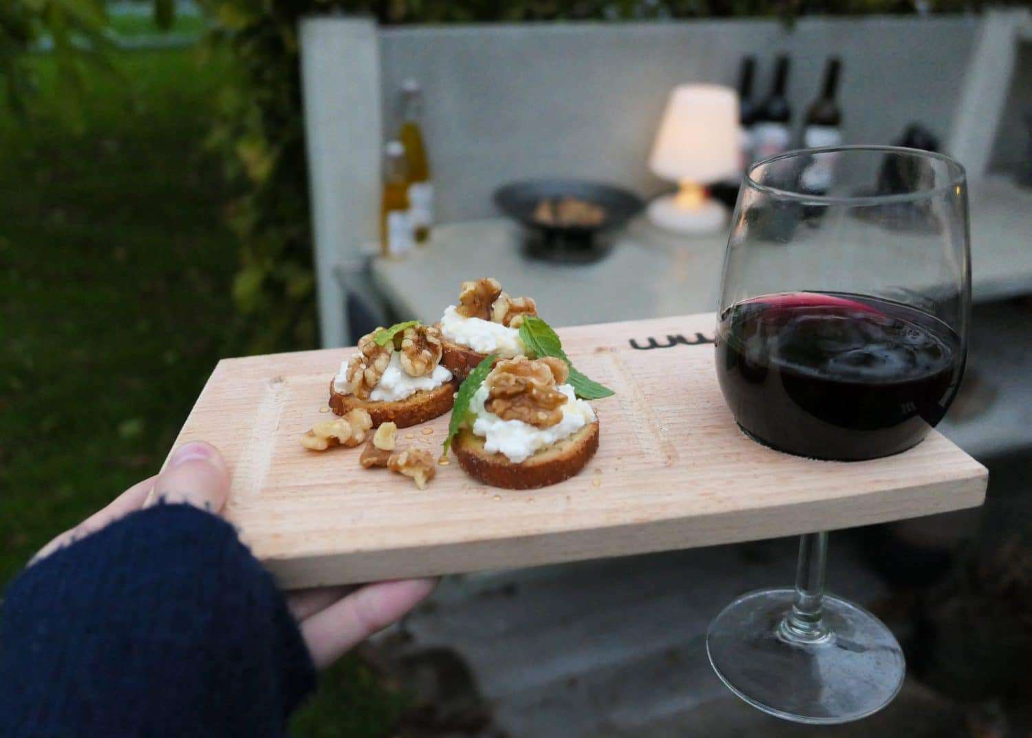 Met deze handige WWOO© booze en bites plank, gemaakt van hout, heb je zowel je bites als je drankje (letterlijk) bij de hand.
